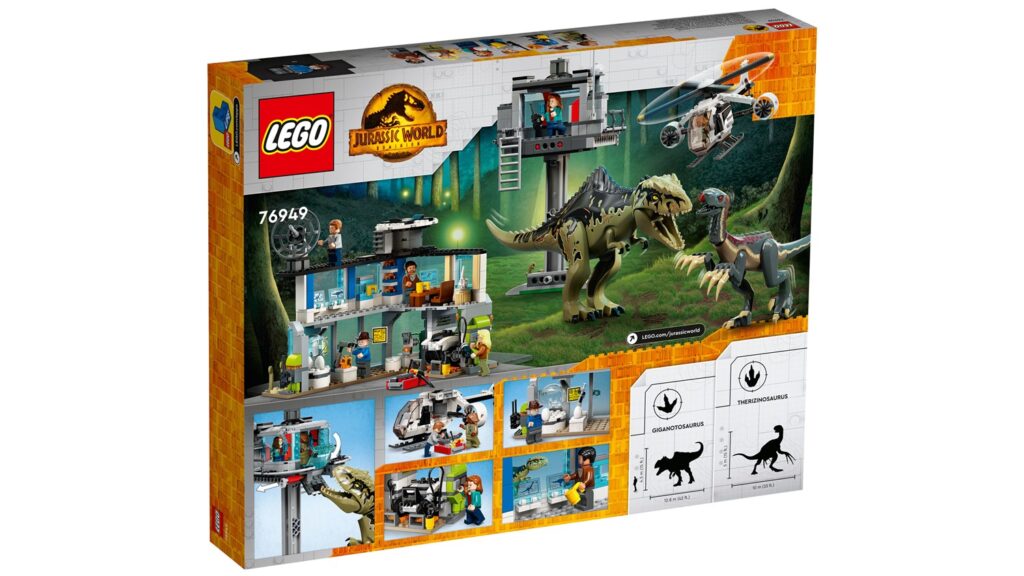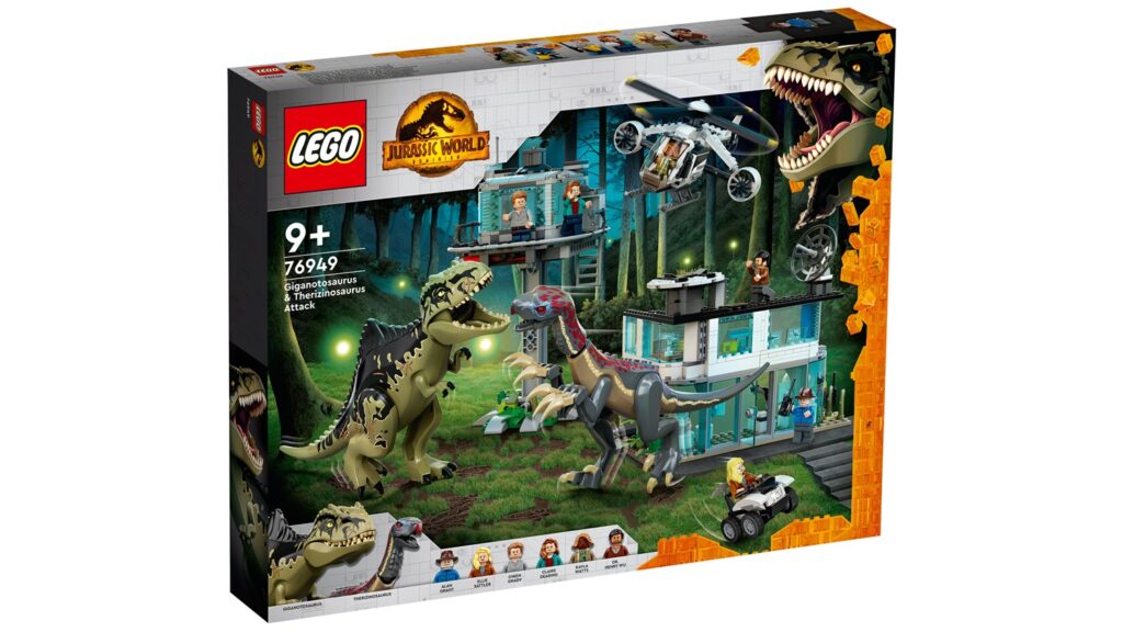 Zestaw 76949 LEGO Atak giganotozaura i terizinozaura to jeden z 11 (licząc Duplo) z serii Jurassic World, które pojawią się w sklepach 17 kwietnia. Dzięki oficjalnym zdjęciom LEGO umieszczonym na stronie niemieckiego sklepu wiemy, jak wygląda.