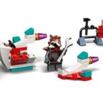 W pudełku znajdziemy też minimodele i akcesoria znane z uniwersum Marvela i seriali Disney+, m.in.: drona, blaster, statek Strażników, bałwana w zbroi Thanosa i wiele innych.