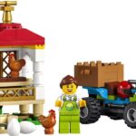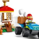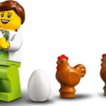 W zestawie mamy minifigurkę farmerki, quada i oczywiście kurnik. Do tego dwie kury i jajka, które można wyjmować z ruchomej szuflady.