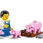 Centralnym punktem jest stodoła (która szału nie robi), a w niej zwierzęta: owca, jagnię, świnia, prosięta i krowa. Obok stoi mała szklarnia z roślinami. W zestawie mamy także m.in. cztery minifigurki, traktor z przyczepką.