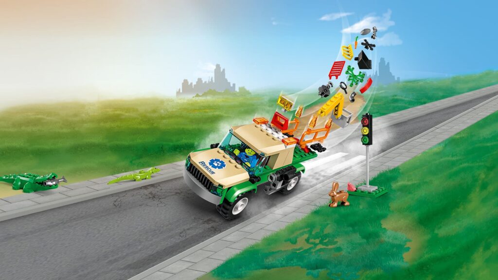 Set do dowolnego budowania. Myśl przewodnia to zwierzęta, dlatego w pudełku znajdziemy m.in. krokodyla i zająca, a także trzy minifigurki.