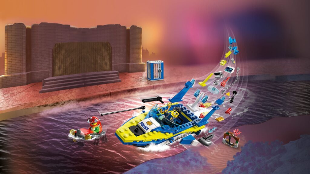 Set do dowolnego budowania. Myśl przewodnia to akwen wodny i policja, dlatego w pudełku znajdziemy elementy marynistyczne i policyjne, a także trzy minifigurki.