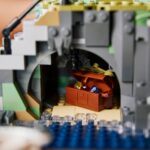 Wróćmy jednak do zestawu – chatka latarnika nie jest „atrapą”, a w pełni urządzonym domkiem ze zdejmowanym dachem. W środku mamy wiele detali, a nad wejściem napis „Aurora Point”, więc to prawdopodobnie nazwa wysepki. W skale jest też jaskinia, w której znajduje się skrzynia ze skarbem.