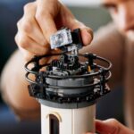 Zestaw ma 54 centymetry wysokości. Jej budowa ma „modułowy” charakter i zawiera cztery piętra (do których dostęp będzie po zdjęciu ścianki) oraz stanowisko z lampą, która rzeczywiście świeci i jednak się obraca! Zestaw zawiera bowiem schowek na baterie (6380609), średni silnik (6290183) i przewód ze światłami (6238858), które zasilają obrotowe światło latarni i świecący kominek w chatce.