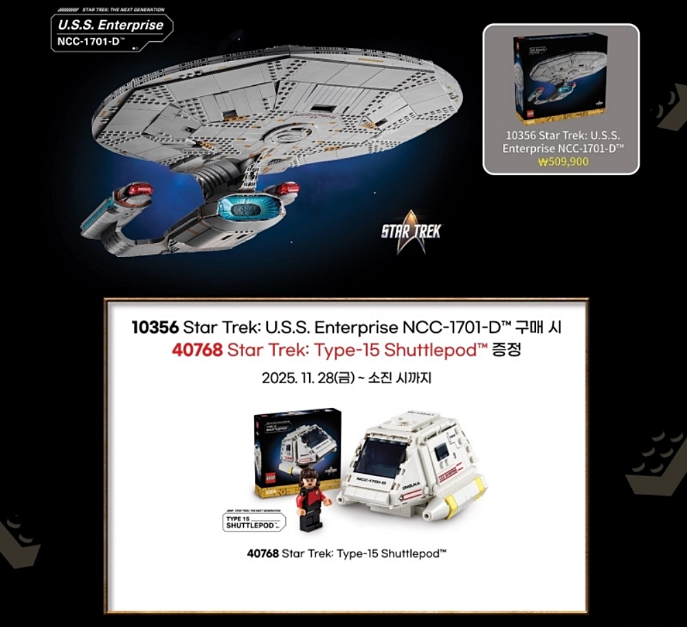 Dodatkowo do debiutującego w Black Friday zestawu LEGO 10356 USS Enterprise gratisem będzie set LEGO 40768 Wahadłowiec type-15 z minifigurką Ro Laren.