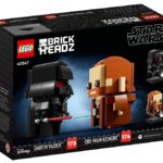 BrickHeadz LEGO 40547 Obi-Wan Kenobi i Darth Vader. Dla tego pierwszego to debiut w tej serii BrickHeadz, ale drugi już miał swój zestaw w 2018 roku o numerze 41619. Nowy model Lorda Sithów ma jednak dużo mroczniejsze oczy i szare akcentach zbroi. Figurki mają ok. 8 cm wysokości.