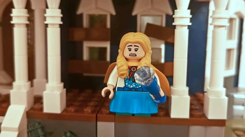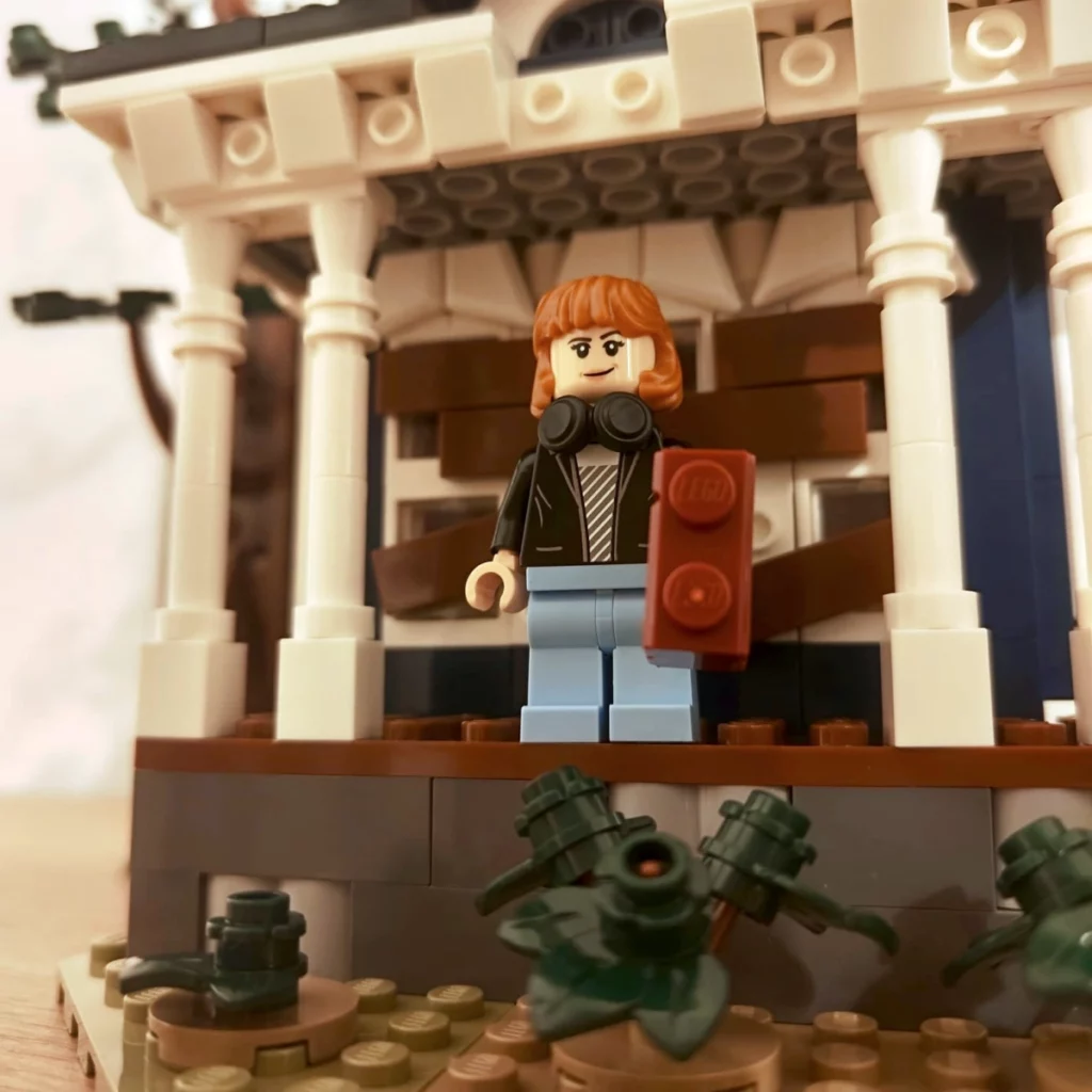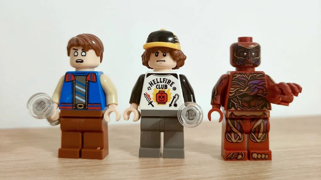 Wśród 13 minifigurek znajdziemy komplet klockowych wersji najważniejszych bohaterów młodszego pokolenia – El, Mike’a, Lucasa, Dustina, Willa, Holly, Max, Nancy, Robin, Jonathana, Steve’a oraz Vecnę i Pana Coto (Mr Whatsit’a, w którego umyśle rozgrywają się sceny w tym domu w piątym sezonie). Brakować może Dereka, którego uważa się za jedną z najjaśniejszych postaci piątego sezonu. Każda z figurek wyposażona jest w akcesoria – latarki, krótkofalówki, zegar, lornetkę, radio. Największe wrażenie na mnie zrobiły: Holly (w spódniczce, pelerynie i świetnych włosach), Dustin (genialny tors), Will (alternatywna buźka jest świetna) i Vecna (zadrukowane części, „wydłużona” lewa ręka). Figurkę Whatsit’a znajdziemy w worku nr 1, figurkę El – w 11, co jest wartym odnotowania „mrugnięciem okiem” przez projektantów.