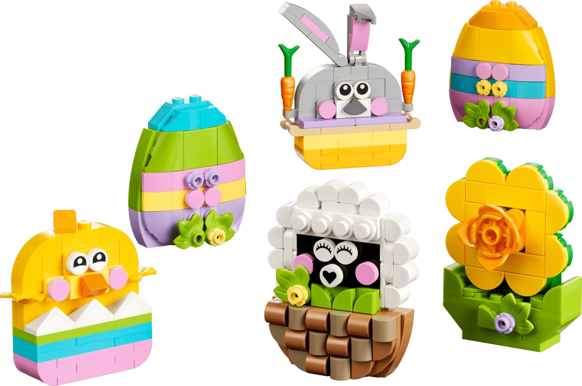Zestaw LEGO 40890 Wielkanocne dekoracje to 312 elementów, z których zbudujemy sześć ozdób – kurczaczka w skorupce, baranka w koszyku z kwiatkiem, zajączka w skorupce z marchewką, żonkila i dwie kolorowe pisanki. Do koszyka wpada przy zakupach dowolnych zestawów za min. 310 zł, czyli raczej niewiele. Zestaw wyceniony jest przez LEGO na 84,99 zł i nie będzie raczej wart więcej.