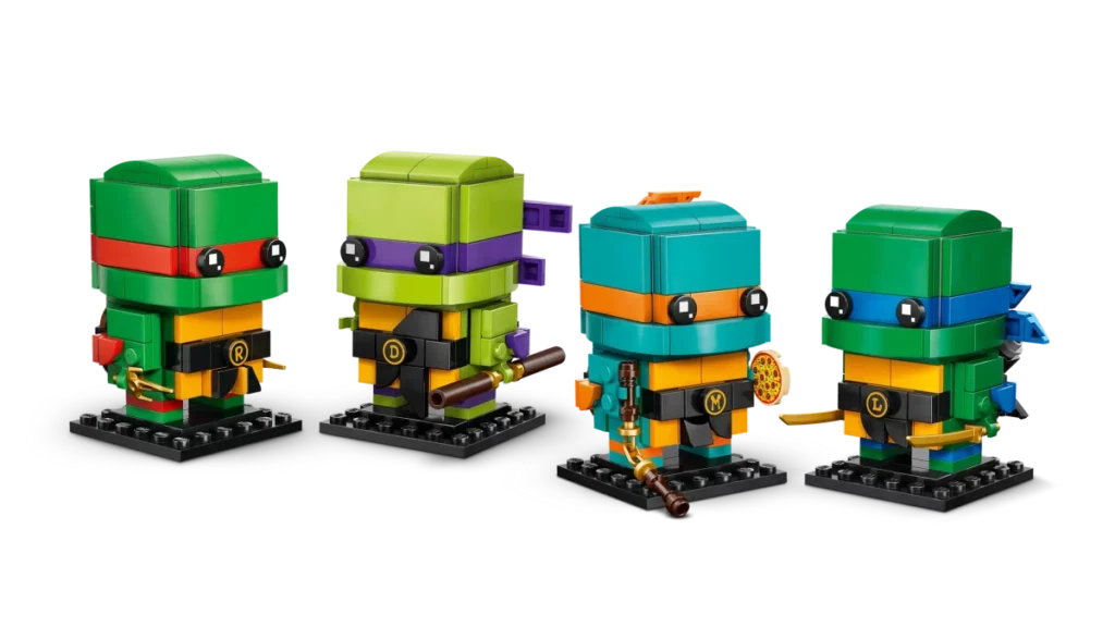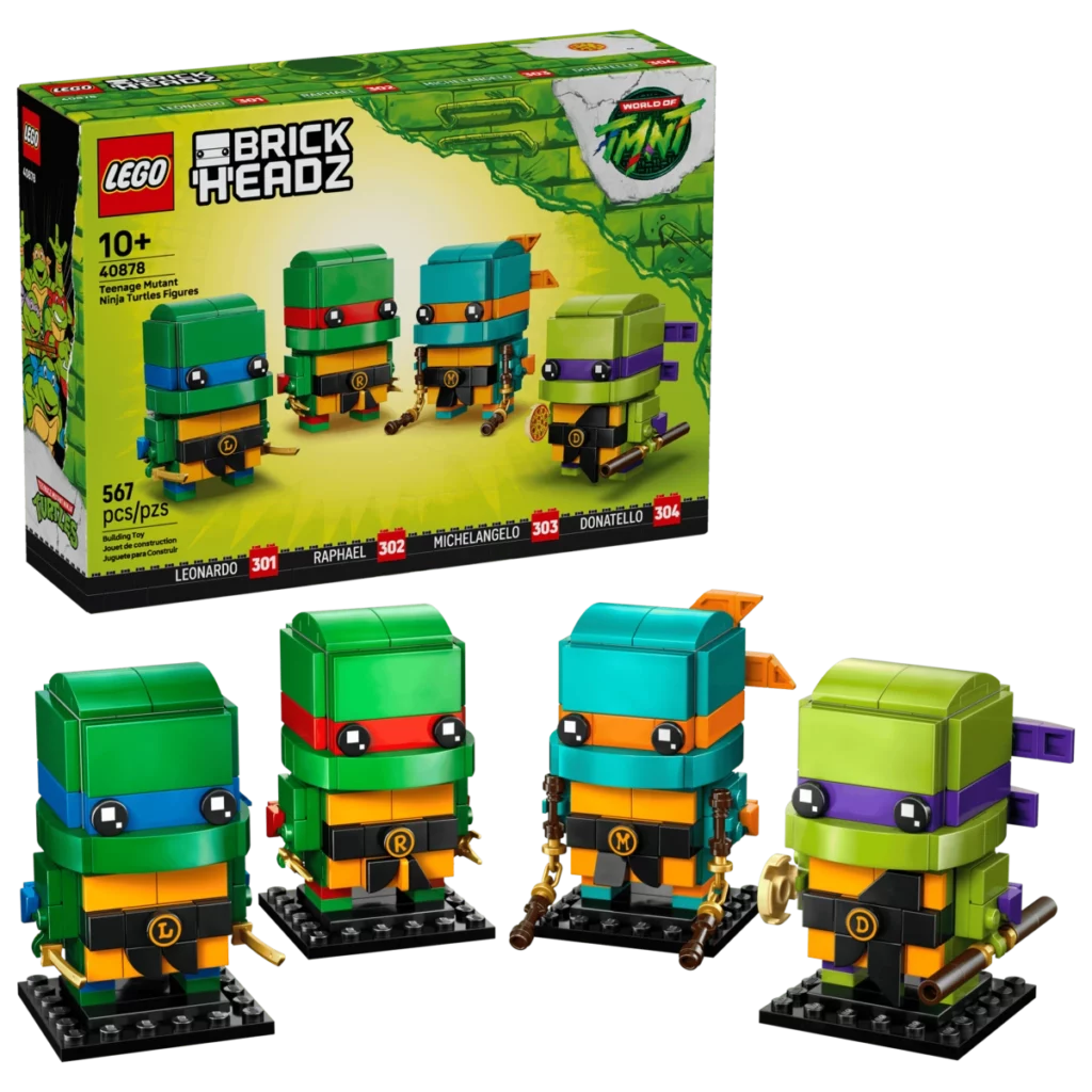 - LEGO 40878 Figurki Wojowniczych żółwi ninja (169,99 zł) – 567 elementów – do zbudowania mamy komplet – Leonarda, Raphaela, Michelangelo i Donatella.