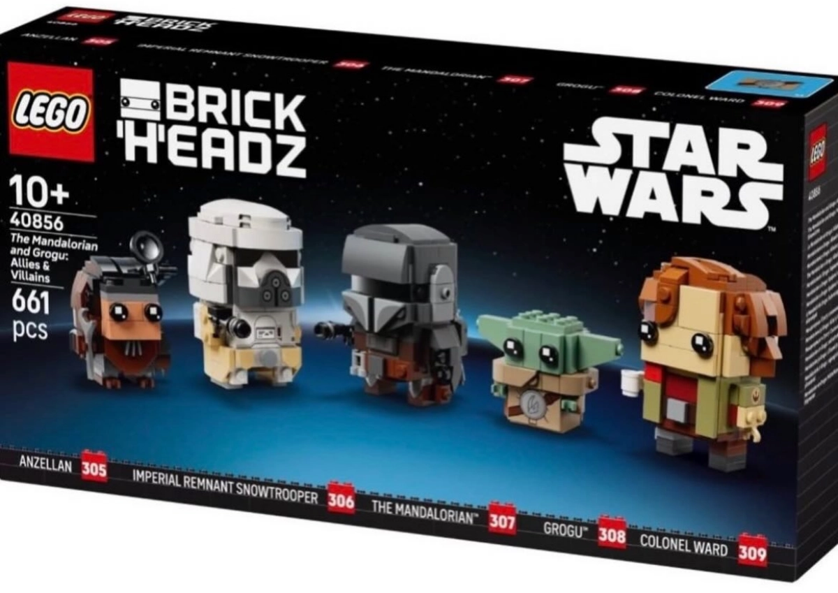 - LEGO 40856 The Mandalorian and Grogu: Sojusznicy i złoczyńcy (169,99 zł) – 661 elementów – 5 postaci Mandalorianina, Grogu, pułkownika Warda, szturmowca śnieżnego Resztek Imperium i Anzellana.
