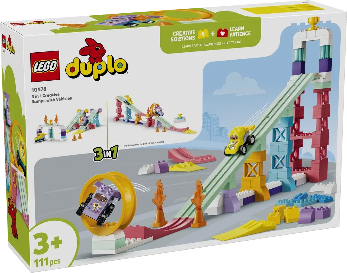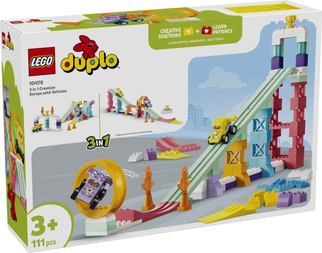 - [NOWE] LEGO 10478 Kreatywne rampy 3 w 1 z pojazdami (299,99 zł) – 111 elementów – w zestawie są dwie wyścigówki oraz klocki, które umożliwiają zbudowanie różnych ramp – jednej długiej z wyskocznią, dwóch krótszych lub pętlę nad „przepaścią”.