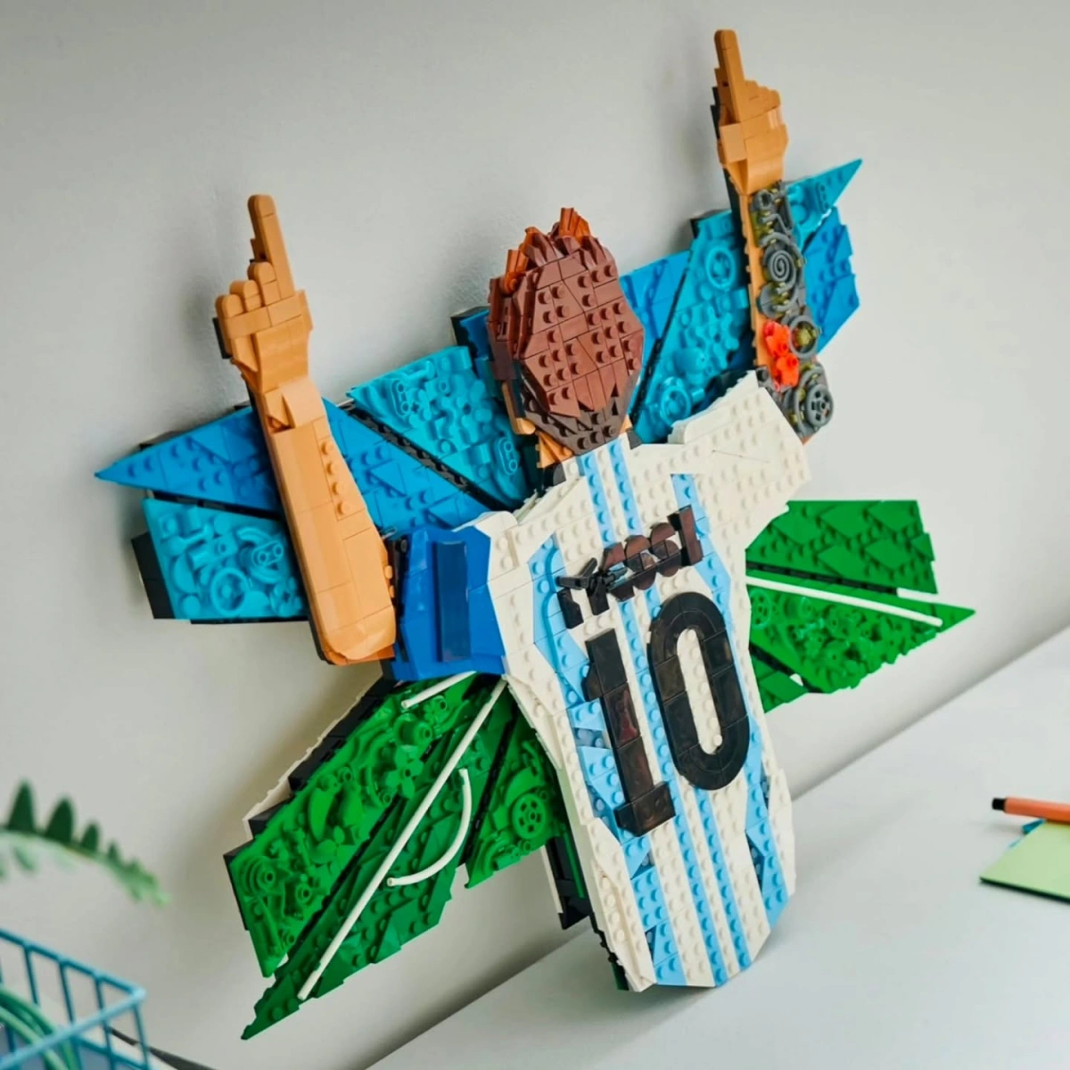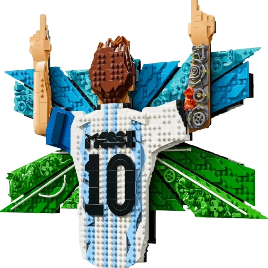 - LEGO 43018 Lionel Messi – cieszynka (779,99 zł) – 1427 elementów – to zestaw 14+, który przestawia argentyńskiego piłkarza patrzącego w niebo. Na tym klockowym obrazie jest też zarys murawy.
