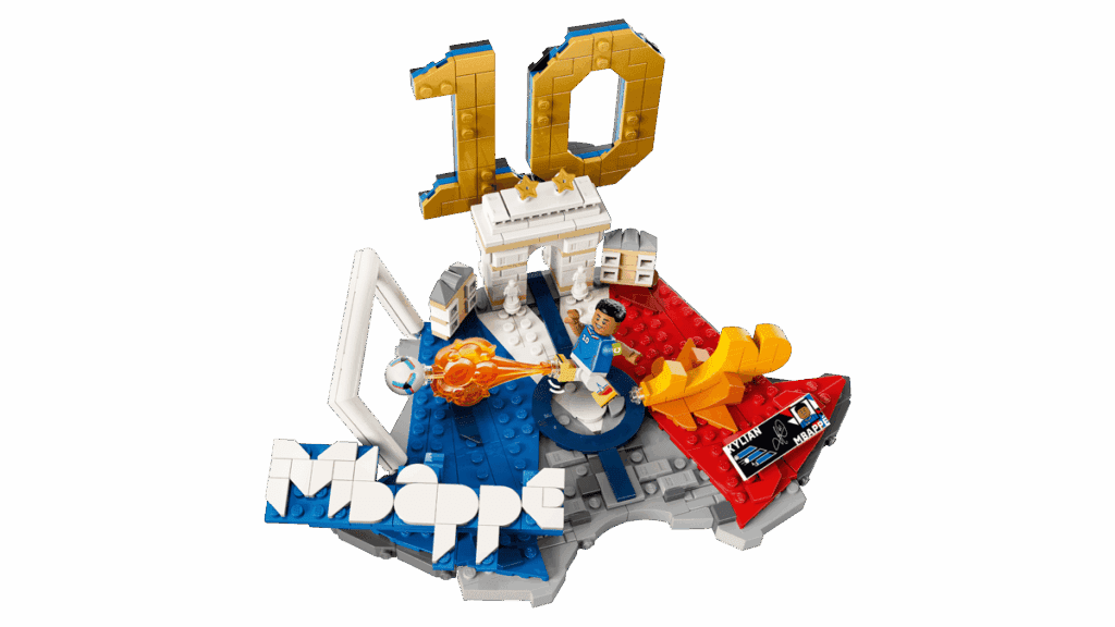 - LEGO 43013 Kylian Mbappé – piłkarskie momenty (124,99 zł) – 490 elementów – to dioramka o wymiarach 13 cm wysokości, 24 cm szerokości i 15 cm głębokości.