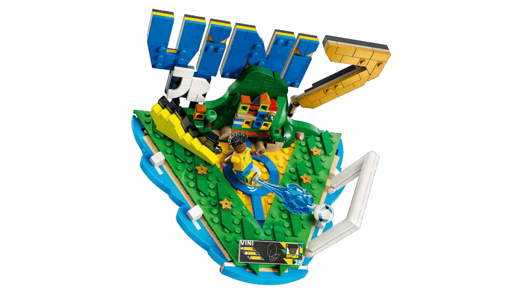 - LEGO 43027 Vini Jr. – piłkarskie momenty (124,99 zł) – 510 elementów – to dioramka o wymiarach 10 cm wysokości, 19 cm szerokości i 16 cm głębokości.