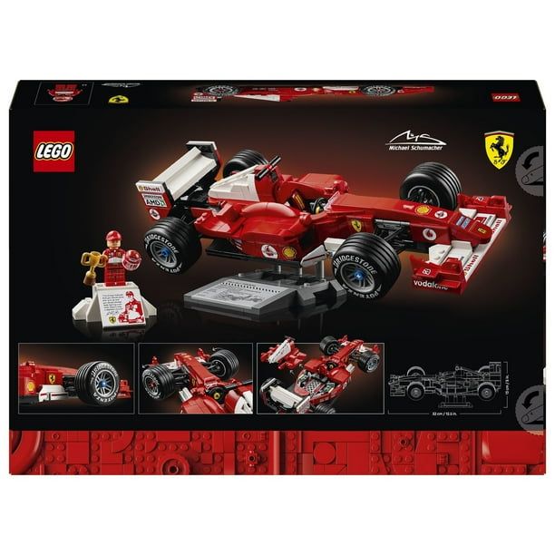 • LEGO 11375 Ferrari F2004 i Michael Schumacher (389,99 zł) – 735 elementów – bolid z 2004 roku ma 7 cm wysokości, 32 cm długości i 13 cm szerokości. Ma też układ kierowniczy, rowkowane opony typu slick i szczegółowy silnik V10, a także podstawkę z informacjami o pojeździe i statystykami. Minifigurka Michaela Schumachera jest wyposażona w kask, trofeum zwycięzcy oraz podstawkę w stylu podium z nadrukowaną grafiką i cytatem z siedmiokrotnego mistrza świata.