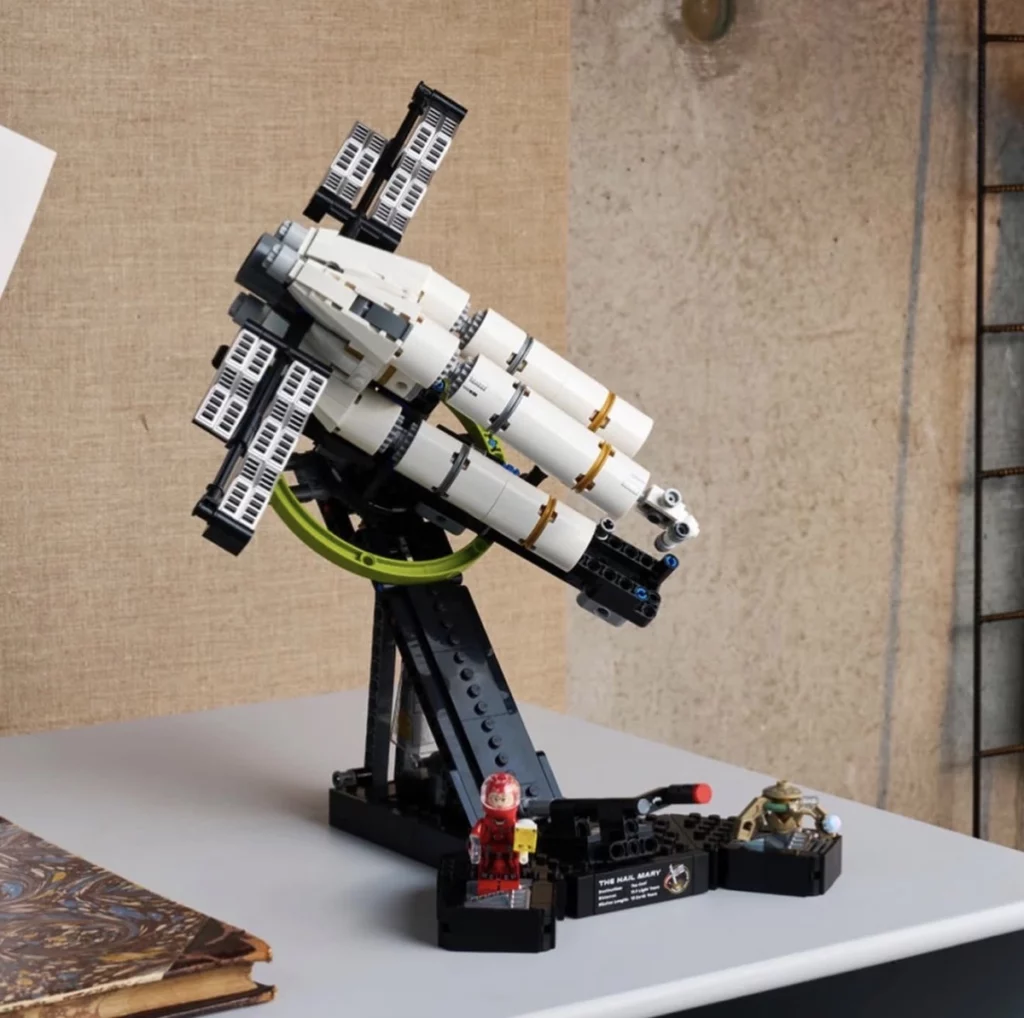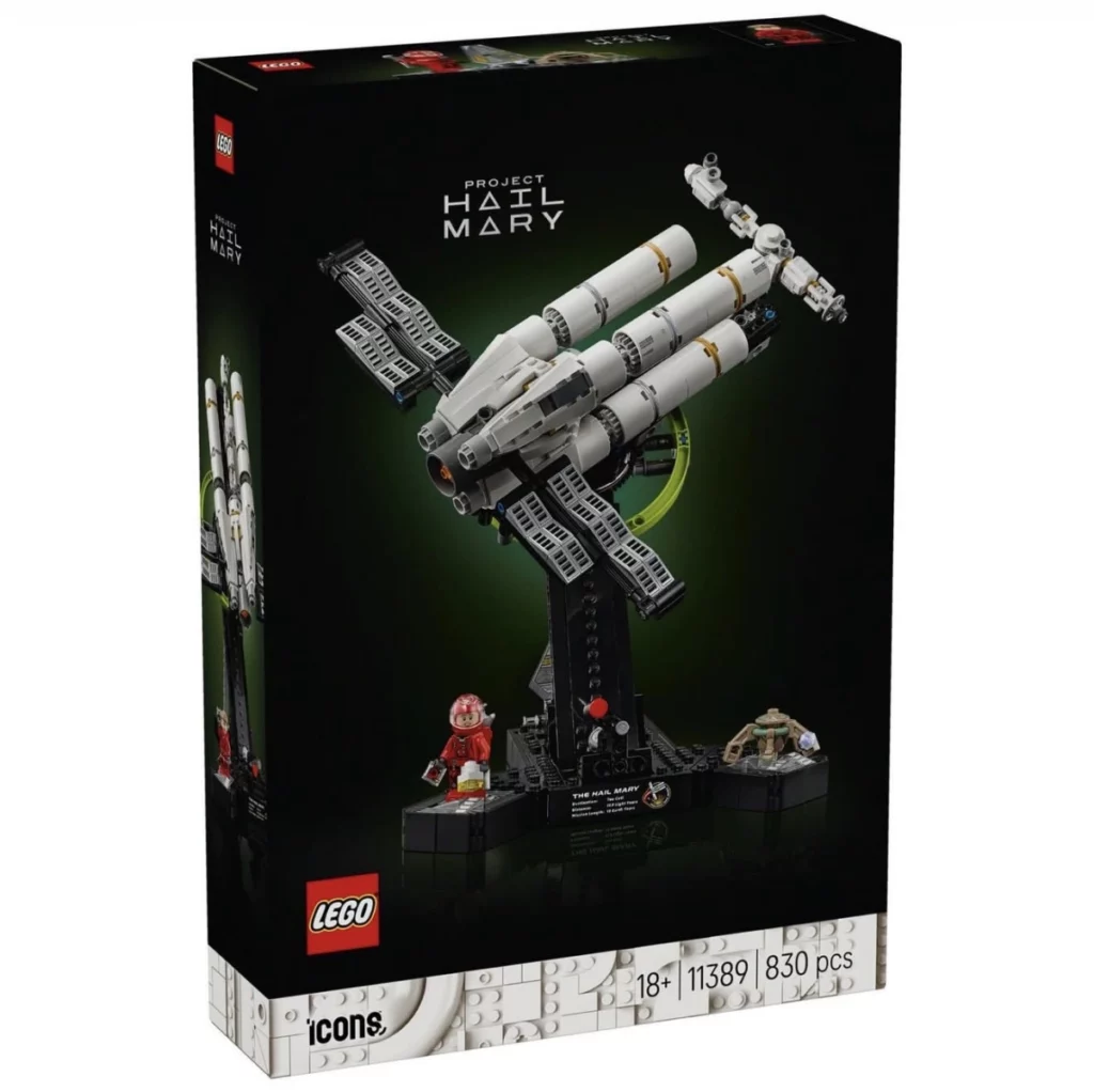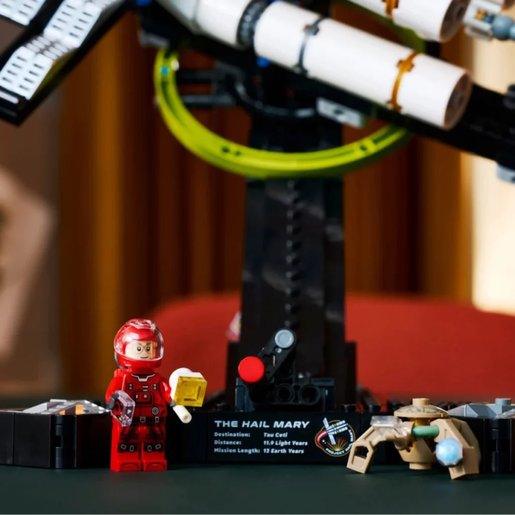 • LEGO 11389 Projekt Hail Mary (479,99 zł) – 826 elementów – zestaw na podstawie filmu o tym tytule. Statek łącznie z podstawką do ekspozycji ma 30 cm wysokości, 25 cm długości i 22 cm szerokości. Podstawka jest ruchoma, dzięki czemu model można ustawiać pod różnym kątem. W zestawie są minifigurka Rylanda Grace’a i figurka kosmity Rocky’ego.
