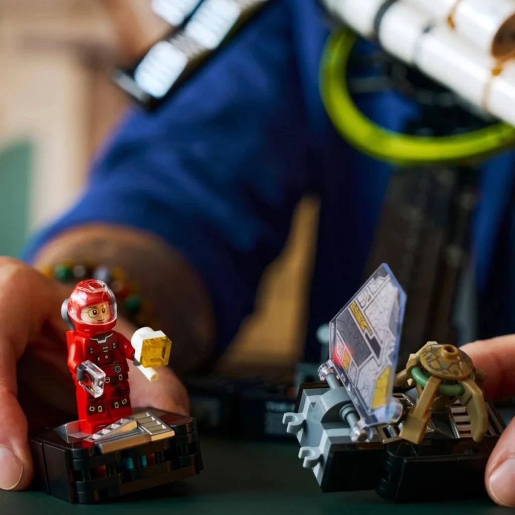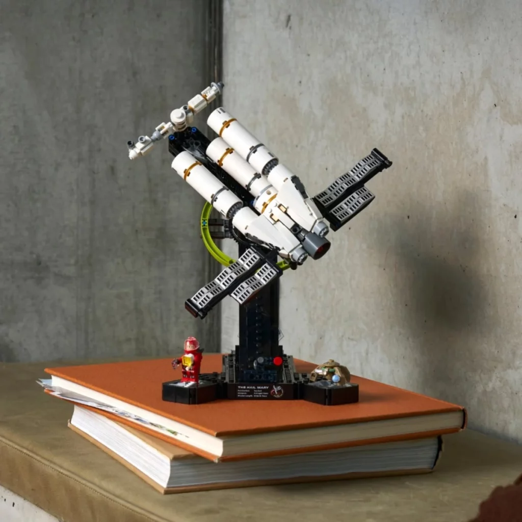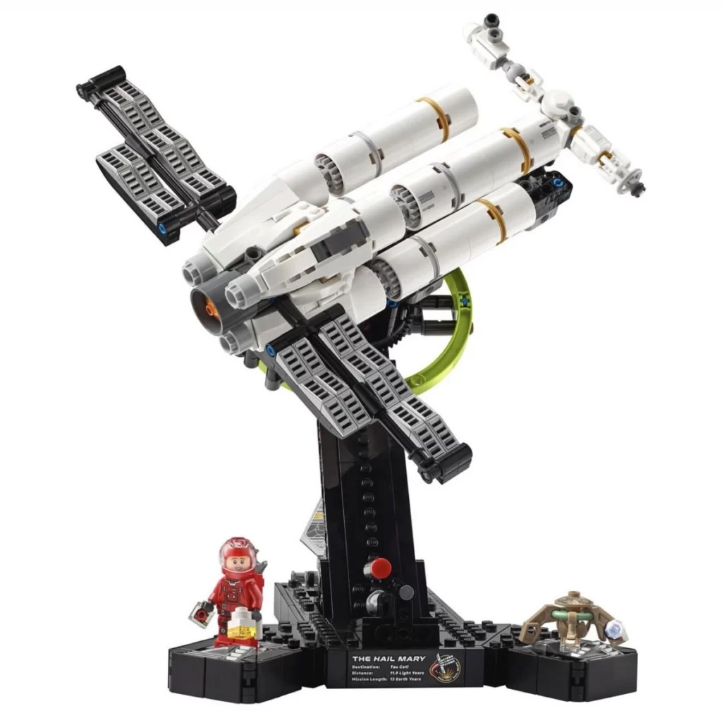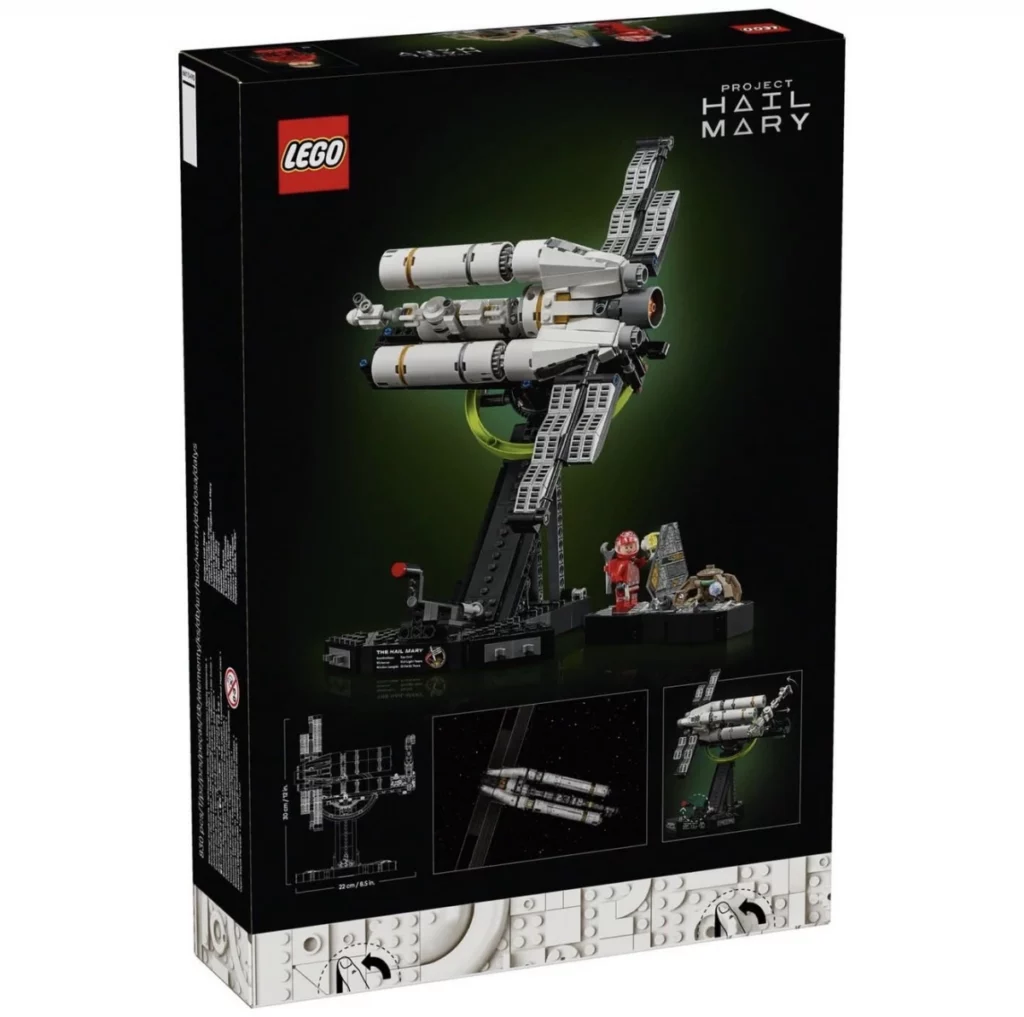 • LEGO 11389 Projekt Hail Mary (479,99 zł) – 826 elementów – zestaw na podstawie filmu o tym tytule. Statek łącznie z podstawką do ekspozycji ma 30 cm wysokości, 25 cm długości i 22 cm szerokości. Podstawka jest ruchoma, dzięki czemu model można ustawiać pod różnym kątem. W zestawie są minifigurka Rylanda Grace’a i figurka kosmity Rocky’ego.