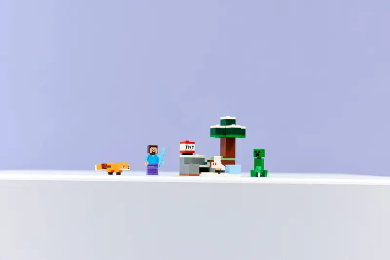 - LEGO 21583 Przygoda Steve’a w tajdze (42,99 zł) – 79 elementów – poza figurką Steva’a są tu też m.in. figurki creepera, lisa i małego króliczka.
