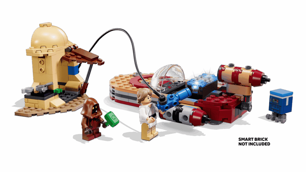 - [NOWE] LEGO 75420 SMART Play: Śmigacz Luke’a (169,99 zł) – 255 elementów – śmigacz ma 4 cm wysokości, 16 cm długości i 11 cm szerokości. Zestaw zawiera SMART minifigurkę LEGO Luke’a Skywalkera, minifigurkę LEGO Jawy i droida Gonk, a także SMART Tag. Ożyw SMART Luke’a Skywalkera, aktywując dynamiczne światła i dźwięki, które imitują tankowanie, naprawę oraz jazdę śmigaczem.