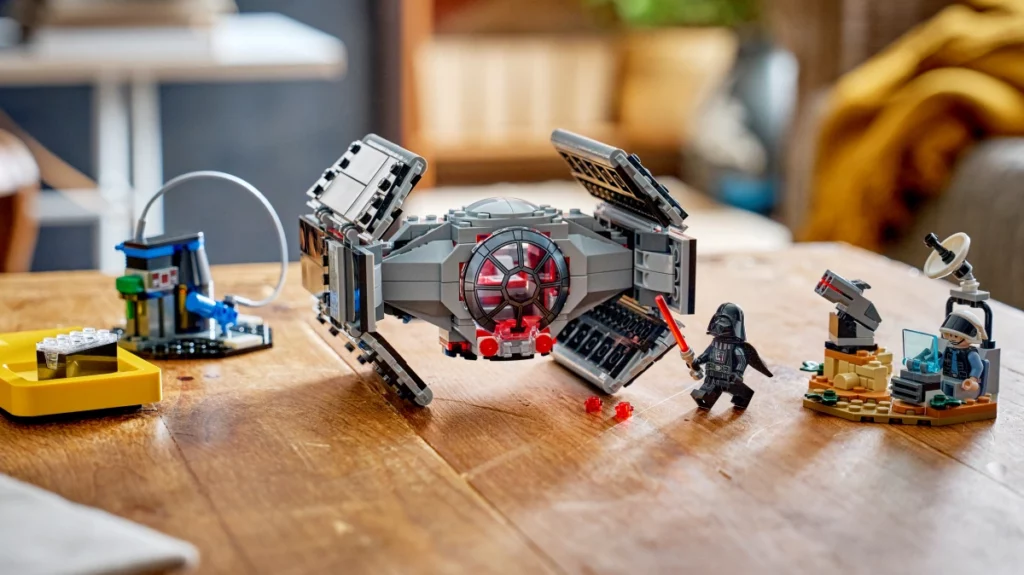 - LEGO 75421 SMART Play: Myśliwiec TIE Dartha Vadera (299,99 zł) – 473 elementy – minifigurka Dartha Vadera w wersji Smart. Do tego 1 klocek Smart i 1 tag Smart. Model ma 10 wysokości, 11 cm długości i 15 szerokości.