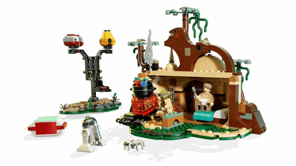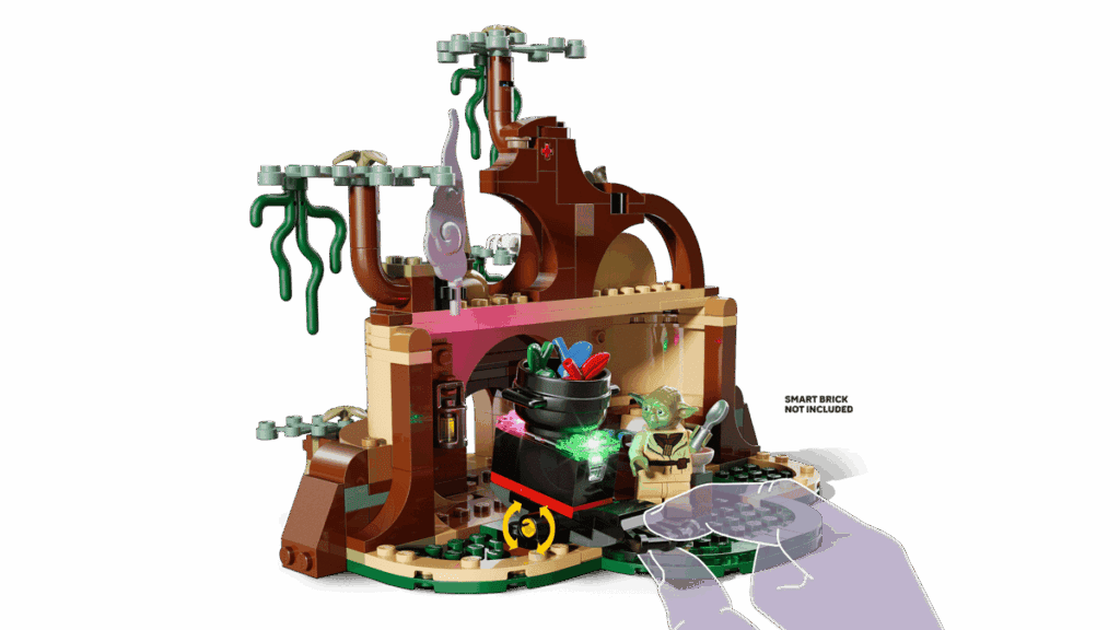 - [NOWE] LEGO 75422 SMART Play: Chatka Yody i szkolenie Jedi (299,99 zł) – 440 elementów – Zestaw zawiera model chatki Yody ze zdejmowanym dachem, ułatwiającym dostęp do łóżka i kuchni, a także miejsce do trenowania. Set zawiera dwa SMART Tagi, minifigurki LEGO (Yoda i Luke Skywalker) oraz figurkę droida LEGO R2-D2. Po dodaniu SMART klocka z zestawu Wszystko w Jednym 75421, 75423 lub 75427 możliwa jest interaktywna zabawa z dźwiękami i światłami, imitującymi „równoważenie Mocy”, gotowanie potraw, a nawet siorbanie.