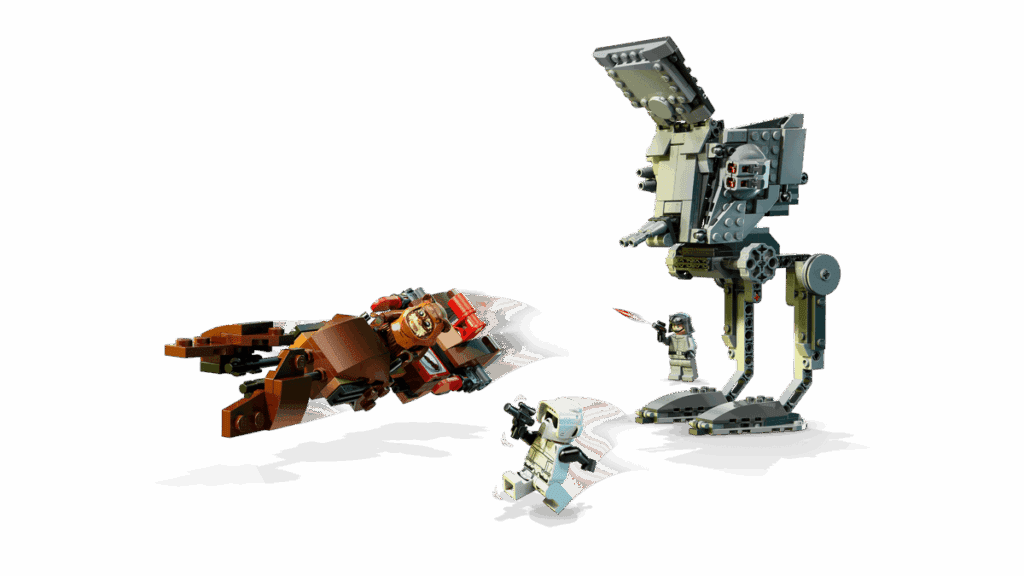 - [NOWE] LEGO 75424 SMART Play: Atak AT-ST (219,99 zł) – 347 elementów – zestaw przedstawia AT-ST z otwieranym kokpitem, ruchomą głową i miotaczami pocisków, oraz ścigacza. Zawiera dwa SMART Tagi oraz trzy minifigurki LEGO: kierowcę AT-ST, zwiadowcę i SMART Wicketa. Dodaj SMARTklocek z innych zestawów, aby zapewnić interaktywną zabawę z dźwiękami i światłami aktywowanymi ruchem, w tym odgłosami silników AT-ST i ścigacza, odgłosami chodzenia AT-ST oraz bitew z użyciem broni laserowej.